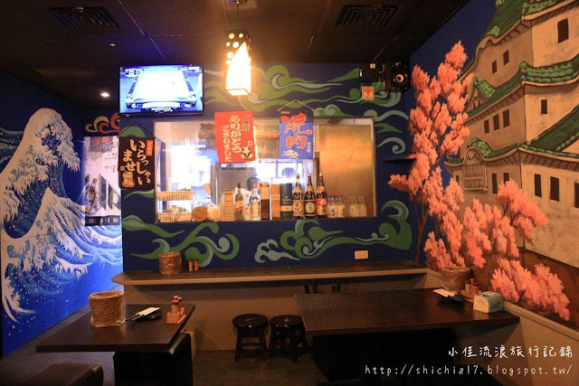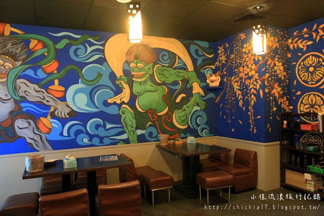 店內和烤站宜安店一樣,都日式風格彩繪,只是這次的主題多了些建築和鬼怪,還有兩隻顏色鮮豔的金魚,好漂亮!!!